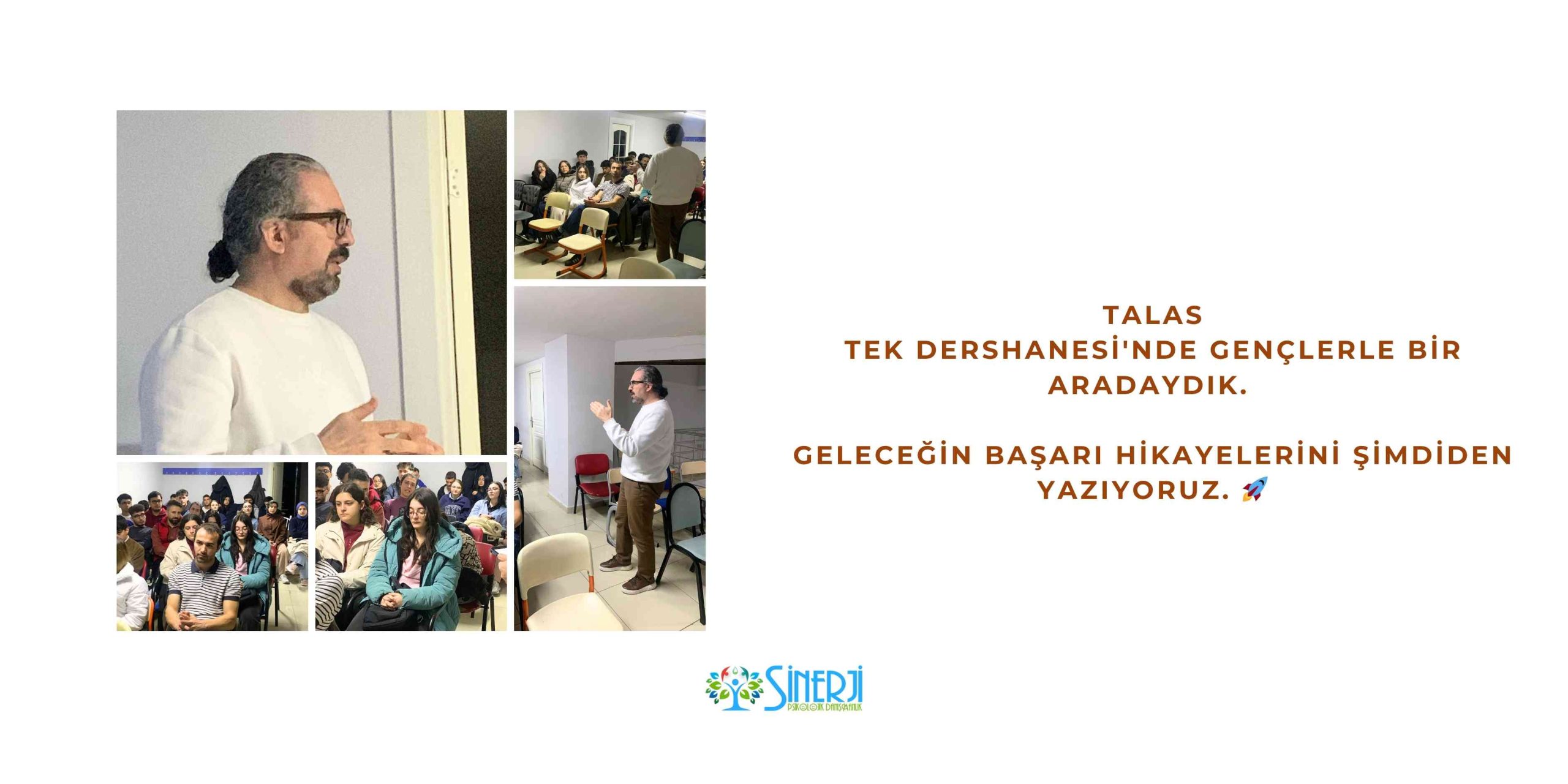 Geçtiğimiz günlerde Talas Tek Dershanesi öğrencileriyle motivasyon ve başarı üzerine harika bir söyleşi gerçekleştirdik. Sinerji PDR ekibi olarak gençlerin heyecanına ortak olduk, gelecek hedefleri üzerine deneyimlerimizi paylaştık. Katılan tüm gençlere ve ilgilerine teşekkür ederiz.